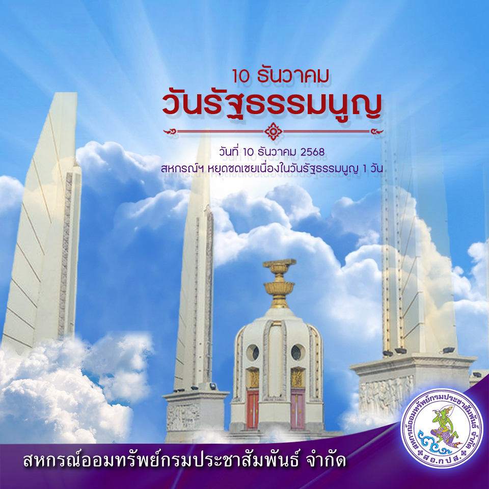 สหกรณ์ฯ หยุด 1 วัน เนื่องในวันวันรัฐธรรมนูญ (10 ธ.ค. 2568)